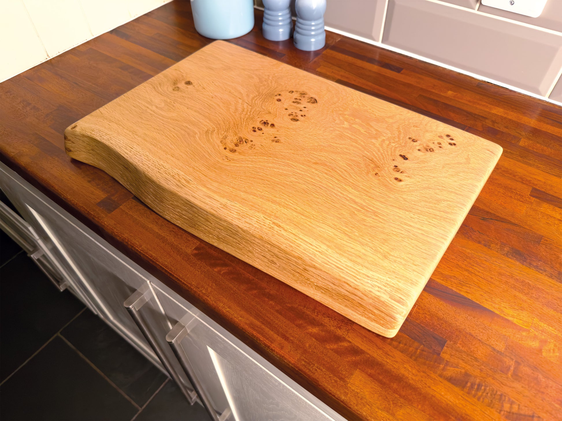 Whether used practically for chopping or saved for occasions to take centre stage with its natural beauty, this hand crafted chunky English oak board is the perfect addition to any kitchen or dining table.